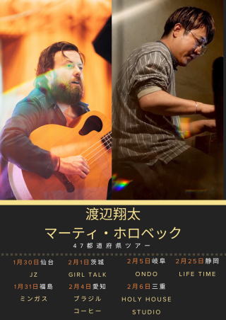 2026年 1月31日(土) 「渡辺翔太&マーティ・ホロベック」 渡辺翔太(p)マーティ・ホロベック(b) 18:00開場18:30開演 MC:4,000円(ドリンク別) 予約受付中 |